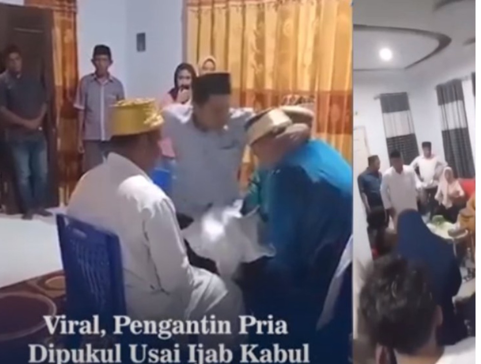 Dalam video tersebut, terlihat aksi saling jotos antara mempelai pria dan wali nikah yang merupakan kakak dari pengantin wanita, tepat setelah prosesi ijab kabul selesai.