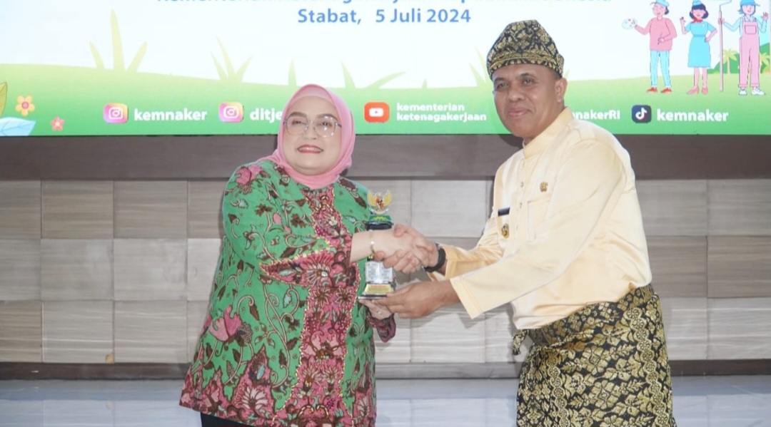 Pj. Bupati Langkat Menghadiri Dialog Edukasi Penerapan Kesetaraan Pencegahan Kekerasan Seksual di Tempat Kerja dan Sosialisasi Undang-undang Kesejahteraan Ibu dan Anak (UUKIA) yang diadakan oleh Kementerian Ketenagakerjaan (Kemnaker RI) yang di laksanakan di Ruang Pola Kantor Bupati Langkat Stabat, Jum’at (5/7/2024).