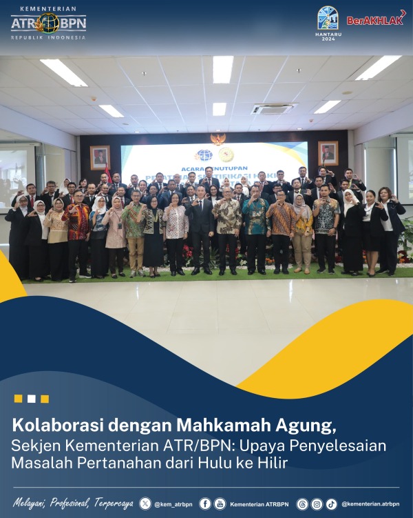 Kab. Bogor,CNN Indonesia.id- Pelatihan Sertifikasi Hakim Pertanahan dan Tata Ruang yang pertama kalinya diselenggarakan atas kolaborasi Kementerian Agraria dan Tata Ruang/Badan Pertanahan Nasional (ATR/BPN) dengan Mahkamah Agung, pada hari Rabu ini (16/10/2024) resmi ditutup. Dari 80 Hakim Peradilan Umum dan Tata Usaha Negara yang mengikuti pelatihan, 78 hakim dinyatakan lulus. Sekretaris Jenderal (Sekjen) Kementerian ATR/BPN, Suyus Windayana menyebut pelatihan ini menjadi langkah awal untuk mengatasi masalah pertanahan dan tata ruang dari hulu ke hilir.