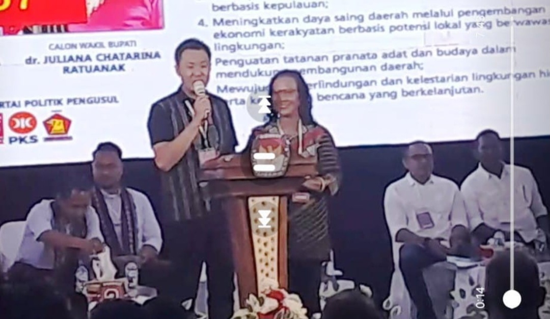 Juliana Ratuanak mewakili Ricky Jauwerissa mengatakan, “Perlu saya klarifikasi, Rp.100-300 juta, program kerja yang dijabarkan dari VISI MISI yang telah disusun Pasangan Calon Nomor Urut 3. Pernyataan Ratuanak, sontak dibalas cemoohon, ejekan dan tertawaan dari pimpinan Partai Politik, tamu dan undangan, tim pemenang, pendukung, simpatisan dan masyarakat yang hadir dan menonton debat kandidat yang disiarkan secara live.