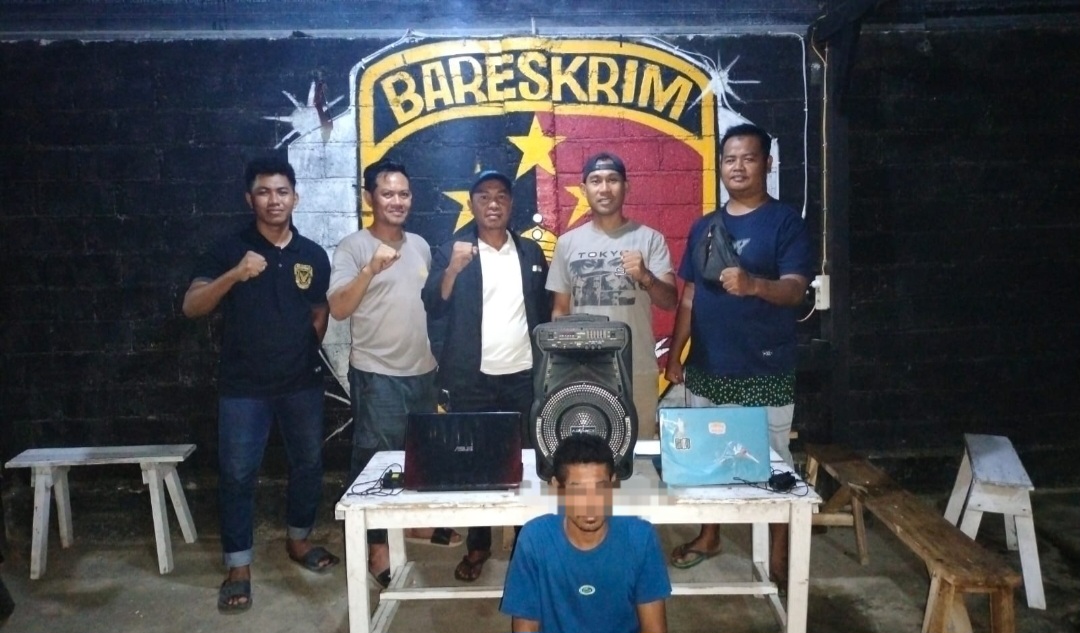 Setelah terduga di tangkap, timsus Polsek Dompu kota mengamankan barang bukti antara lain, 2 Unit Laptop dengan Merek Asus 14 in warna Silver dan Asus 14 in Warna Hitam Kombinasi merah dan Satu Unit Speaker merek Advance Warna Hitam.