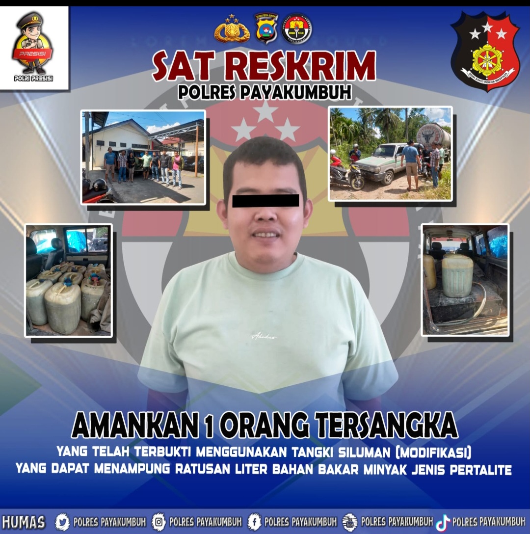 ” Berdasarkan pengakuan tersangka, kendaraan tersebut memang bertujuan memuat bahan bakar minyak dengan skala besar yang mana nantinya akan di jual kembali oleh tersangka, ” ujar Kapolres Payakumbuh AKBP Ricky Ricardo melalui Kasat Reskrim AKP Doni Pramadona.