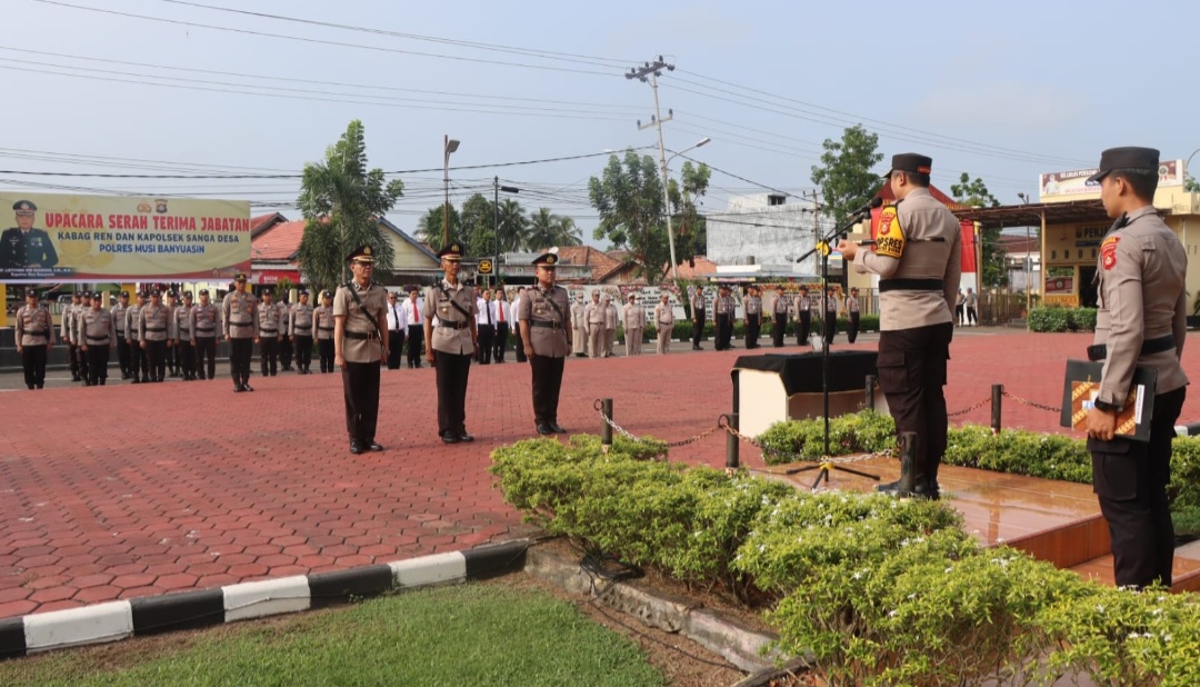 Kapolres Muba AKBP Listiyono Dwi Nugroho SIK, MH, Pimpin Upacara Sertijab Satu Kabag dan Satu Kapolsek
