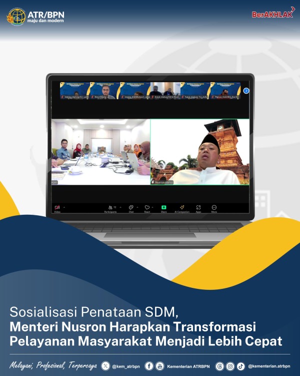 Jakarta,CNN Indonesia.id – Kementerian Agraria dan Tata Ruang/Badan Pertanahan Nasional (ATR/BPN) melakukan penataan sumber daya manusia (SDM) dengan harapan kelembagaan instansi menjadi lebih sehat, sehingga dapat meningkatkan pelayanan kepada masyarakat. Hal ini disampaikan oleh Menteri ATR/Kepala BPN, Nusron Wahid dalam Sosialisasi Penataan SDM di lingkungan Kementerian ATR/BPN yang berlangsung via daring dan luring di Kementerian ATR/BPN, Jakarta pada Jumat (15/11/2024).