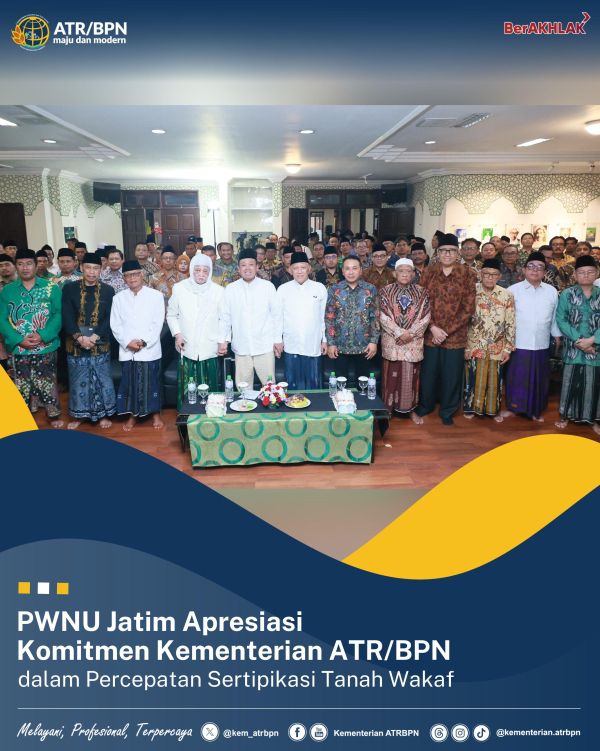 “Ini untuk percepatan sertipikasi hak atas tanah yang dimiliki NU secara struktural dan komunitas keagamaan berbasis NU di Jawa Timur. Hak atas tanah itu bisa meliputi tanah wakaf, banyak yang masih berantakan belum terdaftar dan belum tersertipikasi. Kita mendorong supaya ada proses pendaftaran, pemetaan, dan sertipikasi,” ujar Menteri Nusron.