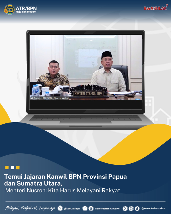 Sejatinya, pelayanan yang diberikan Kementerian ATR/BPN perlu berlandaskan kebutuhan masyarakat. Untuk itu, kepada Kepala Kanwil BPN Provinsi Papua, Roy Eduard F. Wayoi, Plt. Kepala Kanwil BPN Provinsi Sumatra Utara, Seti Kuncoro, beserta seluruh jajaran yang hadir, Menteri Nusron menekankan pentingnya memastikan pelayanan yang ada di Kementerian ATR/BPN ini sesuai dengan perubahan yang terjadi di masyarakat.