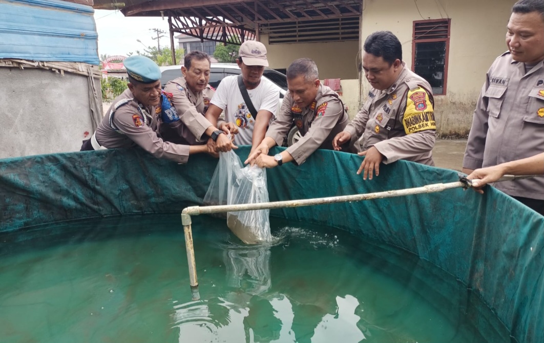 Langkat (Sumut) CNN Indonesia.id – Kapolsek Hinai, AKP T. C. Sihite, SH, bersama personel Polsek Hinai, melaksanakan kegiatan pembuatan kolam ikan dan penaburan bibit ikan lele sebanyak 1.500 ekor. Kegiatan ini dilakukan dalam rangka mendukung Program Asta Cita Presiden RI terkait Ketahanan Pangan. Kolam ikan berukuran sekitar 2 x 3 meter ini terletak di belakang Mapolsek Hinai, Kelurahan Kebun Lada, Kecamatan Hinai, Kabupaten Langkat. Selasa (10\12\24)