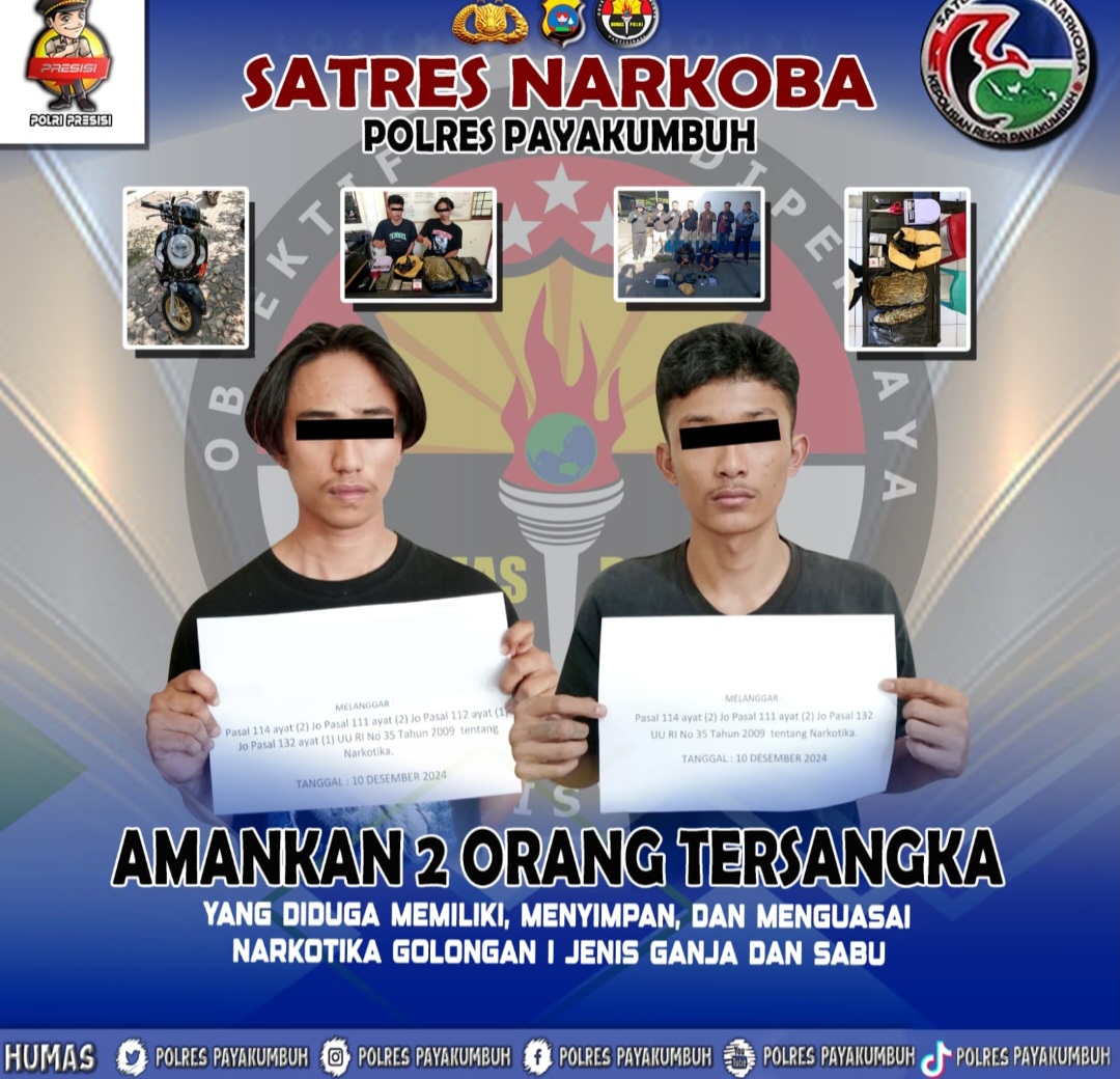 Payakumbuh, CNN Indonesia.id – Sat Narkoba Polres Payakumbuh meringkus dua orang pemuda yang kedapatan serta terbukti secara sah menyimpan dan memiliki narkotika jenis ganja dan sabu-sabu.