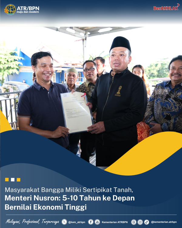 Masyarakat Bangga Miliki Sertipikat Tanah, Menteri Nusron: 5-10 Tahun ke Depan Bernilai Ekonomi Tinggi