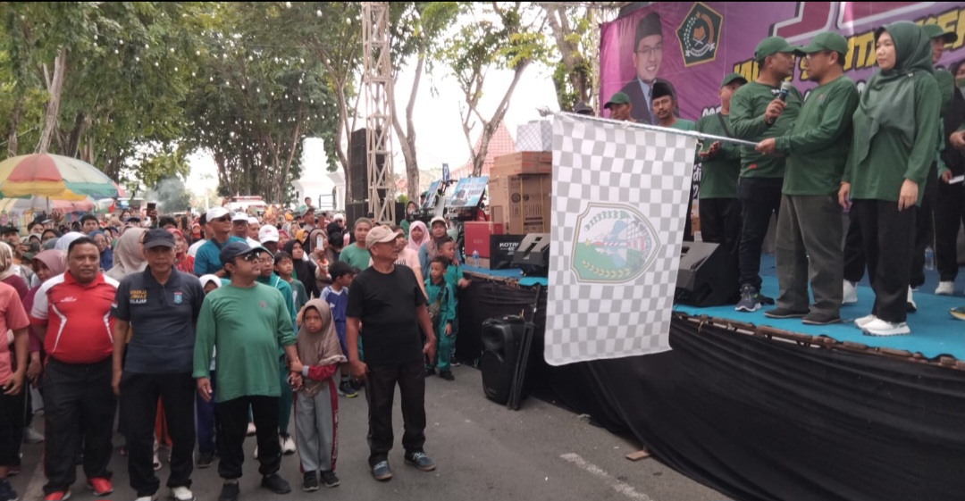 Masyarakat sangat antusias mengikuti Jalan Santai Kerukunan dengan kupon gratis yang di berikan oleh panitia.