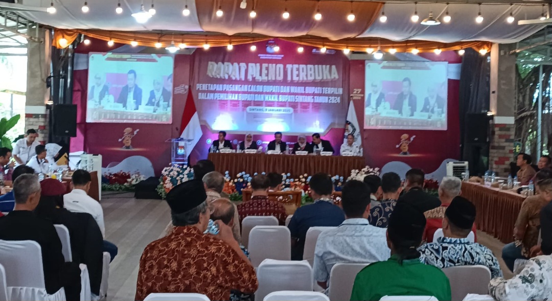 Sintang, Kalbar, CNN Indonesia.id – Komisi Pemilihan Umum Kabupaten Sintang melaksanakan Rapat Pleno Terbuka dengan agenda Penetapan Pasangan Calon Bupati dan Wakil Bupati Terpilih dalam Pemilihan Bupati dan Wakil Bupati Sintang Tahun 2024, di Aula Serantung Waterpark Jalan Mungguk Serantung pada Kamis, 9 Januari 2025.