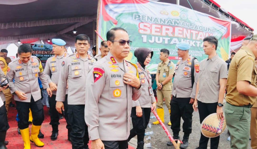 Dipusatkan di Kabupaten Ogan Ilir, Kapolda Sumsel Bersama Pangdam II Sriwijaya Tanam Jagung di Program 1 Juta Hektar