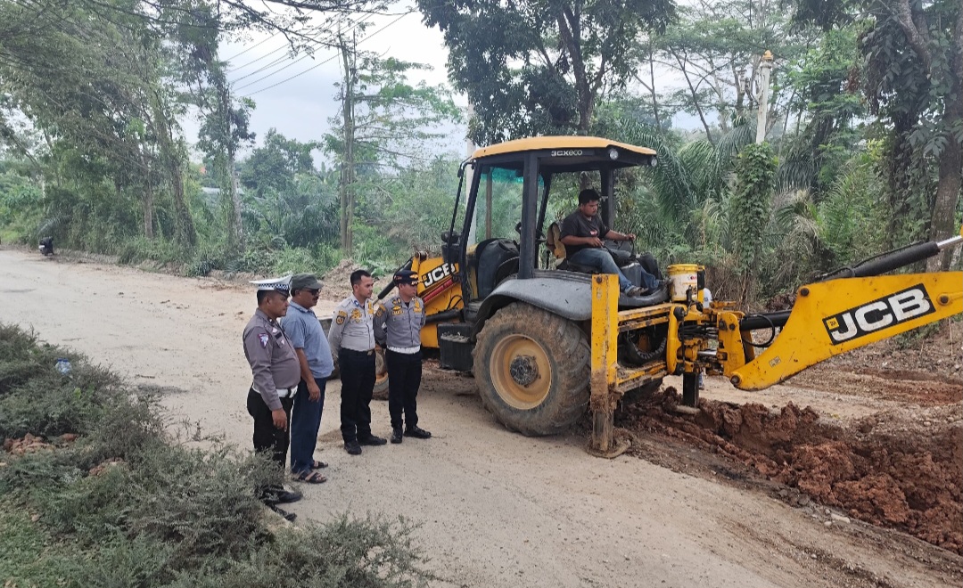 Tanggap Cepat PUPR Perbaiki Jalan Rusak, Berkat Koordinasi Sat Lantas Polres Rohul dan Dishub