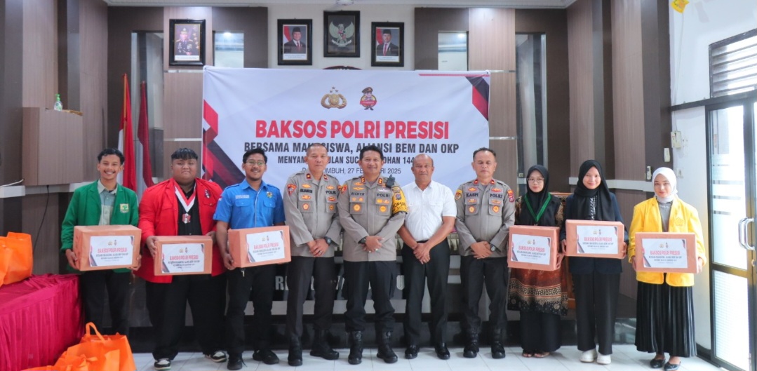 Payakumbuh, CNN Indonesia.id – Berlokasi di Aula Rupattama Mapolres Payakumbuh, Kamis (27/02), Polres Payakumbuh menggelar Bakti Sosial Presisi yang melibatkan sejumlah mahasiswa, aliansi BEM se Kota Payakumbuh dan Organisasi Kemasyarakatan Pemuda (OKP)