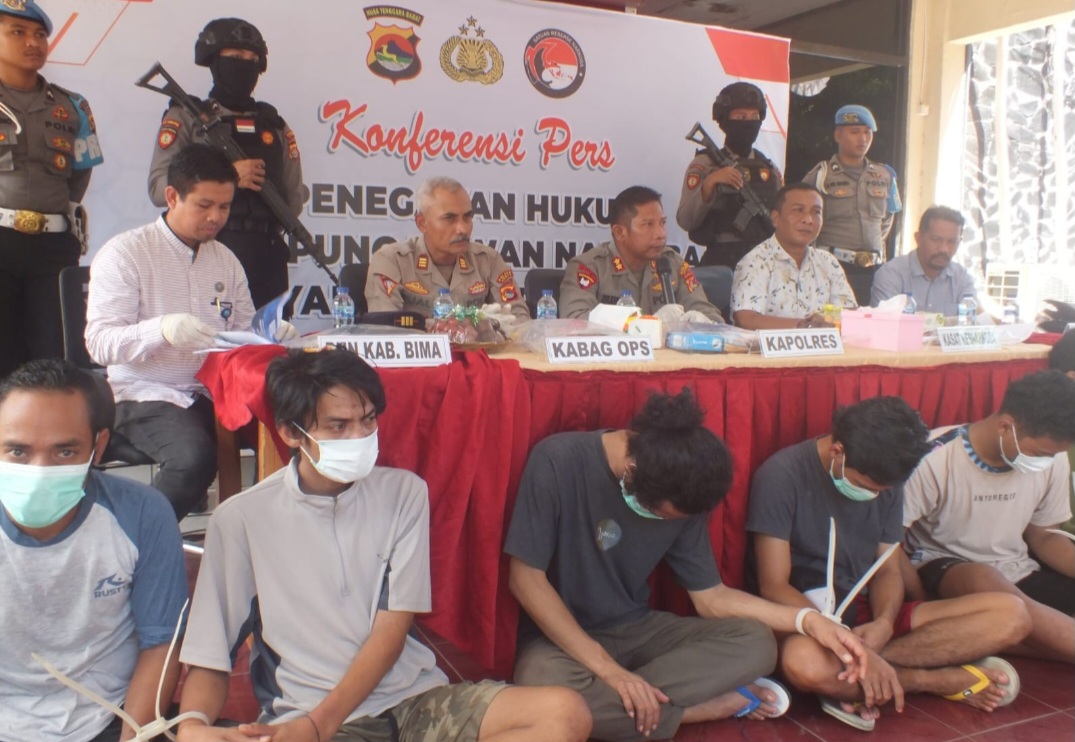Dari hasil penyelidikan sementara di tegaskan Kasat Narkoba Iptu Muhamad Sofian Hidayat S.Sos, bahwa ke tujuh orang yang di tangkap ini masih status terduga, dan di antara ke tujuh terduga ini merupakan residivis dalam kasus yang sama dan merupakan DPO polres Dompu.