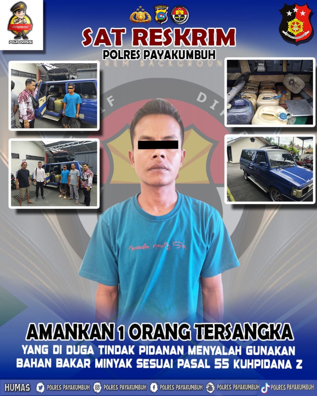 Kapolres Payakumbuh AKBP Ricky Ricardo, S.I.K.,S.H.,M.H. melalui Kasat Reskrim AKP Doni Pramadona, S.H menjelaskan, pengungkapan ini berawal dari adanya informasi yang di terima jajaranya yang menyatakan bahwa adanya salah seorang pembeli BBM bersubsidi jenis pertalite menggunakan mobil Toyota Kijang Super KF 50 Long BA 1362 MY di SPBU Sawah Padang menggunakan tangki modifikasi (tangki siluman).