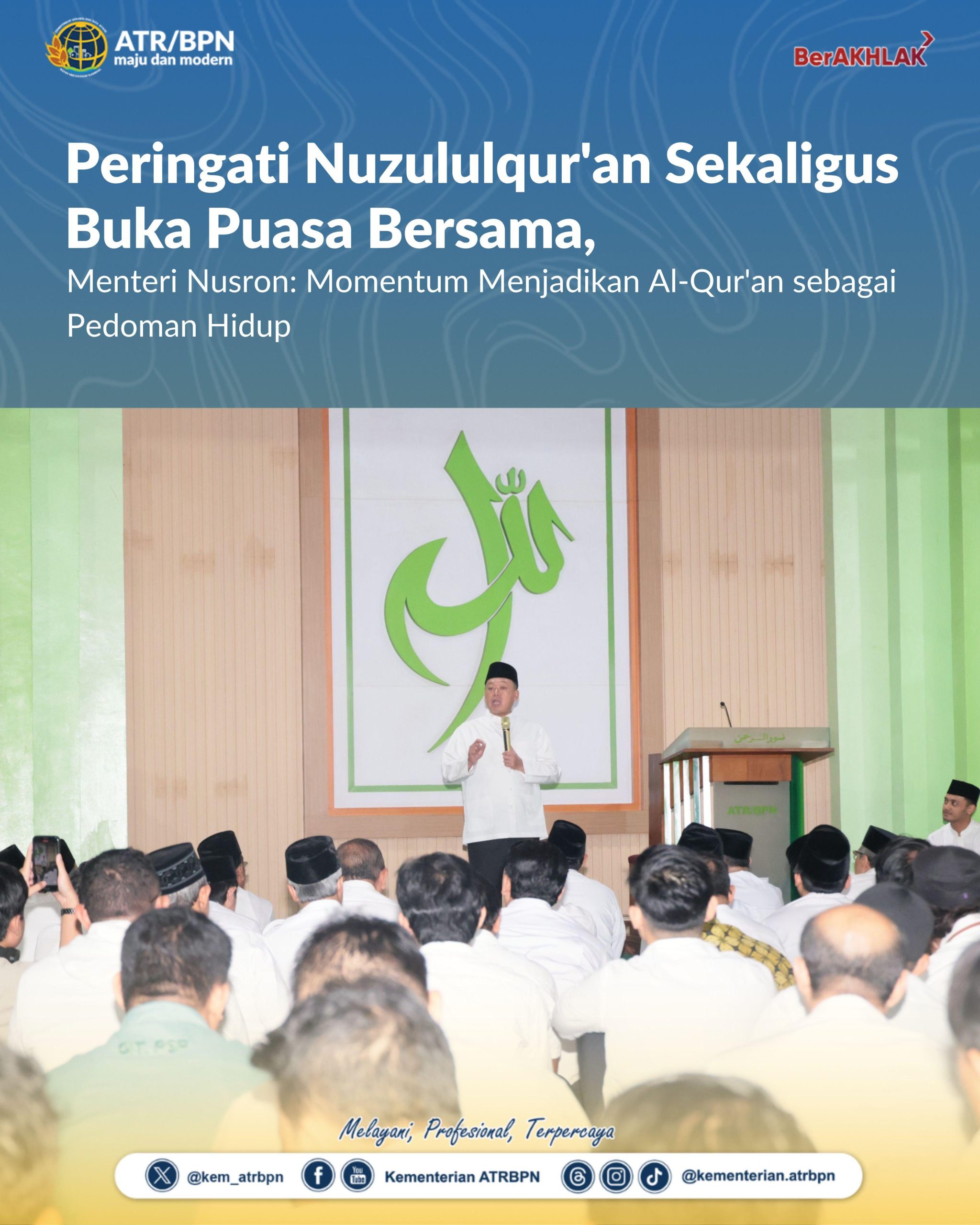 Peringati Nuzululqur’an Sekaligus Buka Puasa Bersama, Menteri Nusron: Momentum Menjadikan Al-Qur’an sebagai Pedoman Hidup