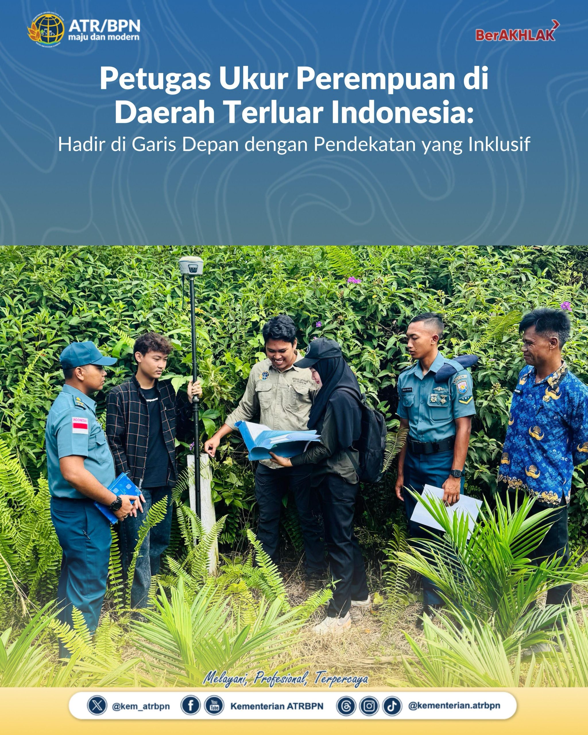 Saat ini, di Kementerian ATR/BPN tercatat ada 805 petugas ukur perempuan dari total 2.747 yang tersebar di seluruh Indonesia. Mereka hadir tidak hanya menjalankan peran teknis pengukuran, tetapi juga membawa pendekatan yang lebih inklusif dan humanis dalam membangun relasi dengan masyarakat setempat.