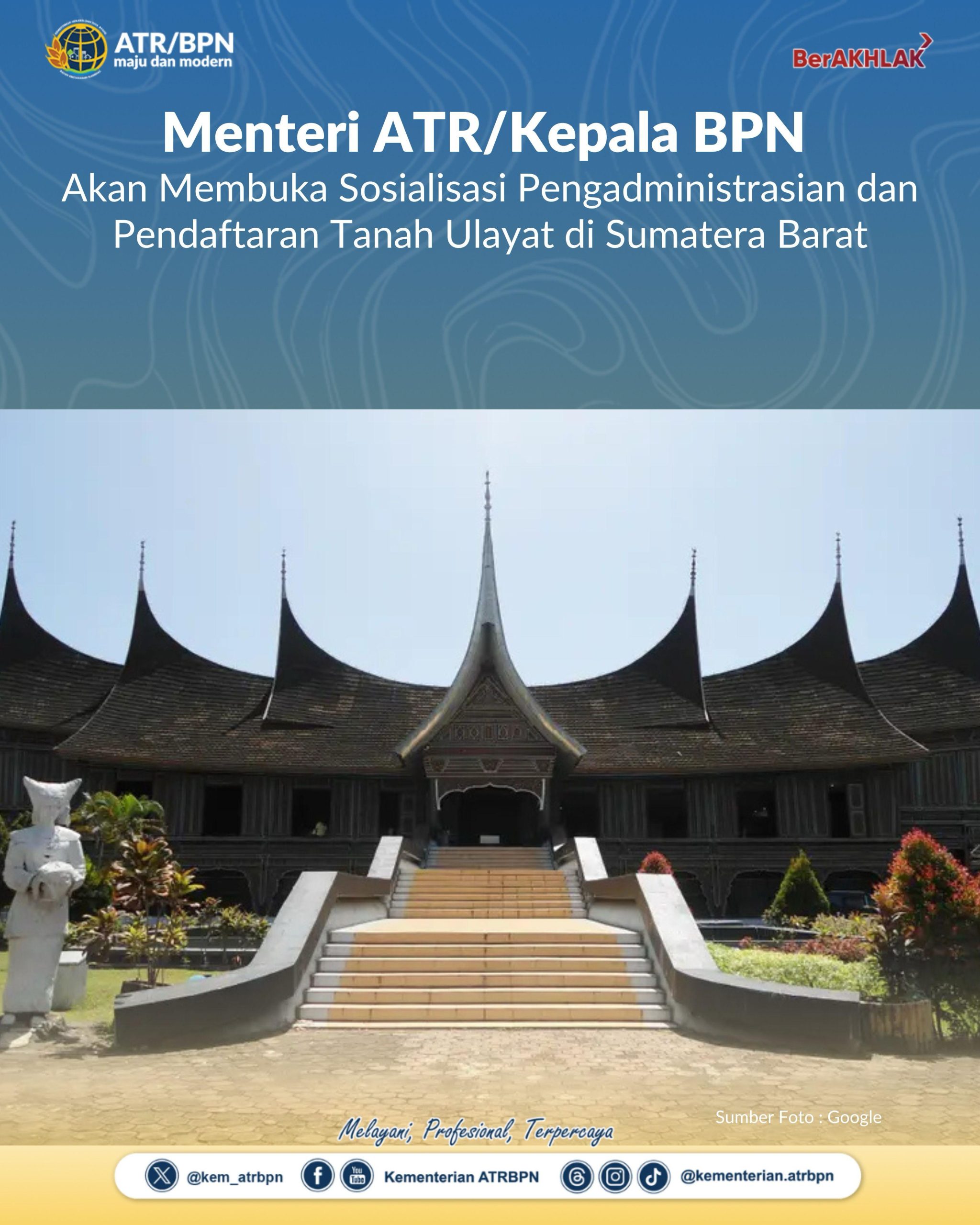 Menteri ATR/Kepala BPN Akan Membuka Sosialisasi Pengadministrasian dan Pendaftaran Tanah Ulayat di Sumatera Barat