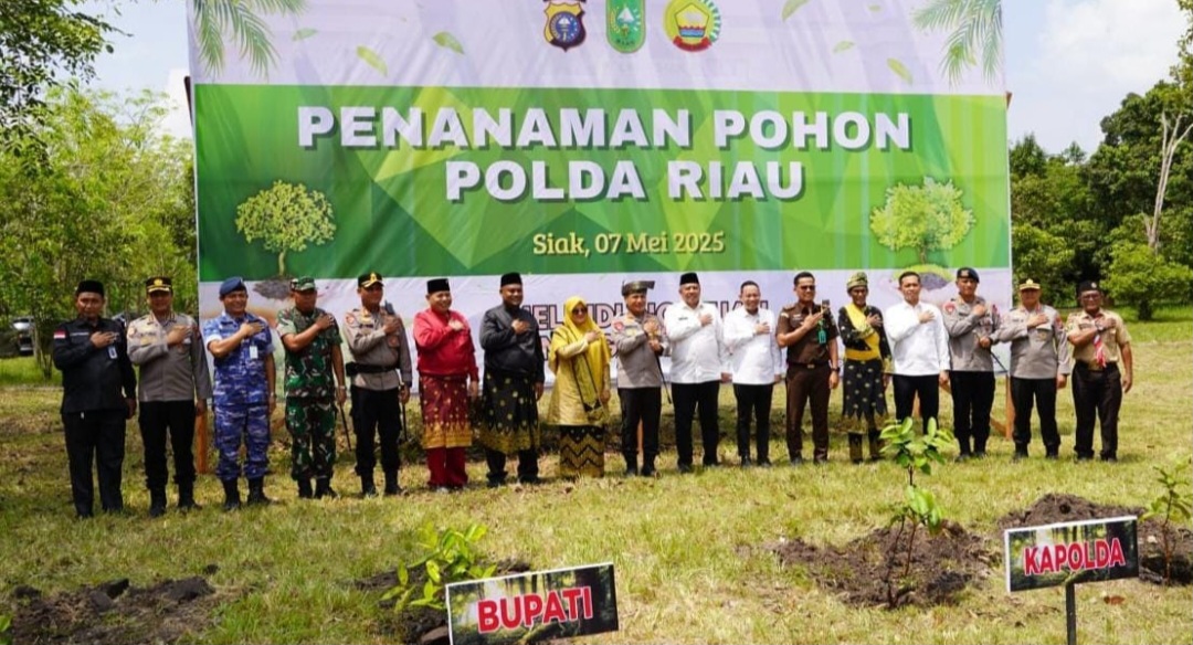 Kapolres Siak, AKBP Eka Ariandy Putra, S.H., S.I.K., M.Si, turut mendampingi Kepala Kepolisian Daerah (Kapolda) Riau, Irjen Pol Dr. Herry Heryawan, S.I.K., M.H., M.Hum, dalam kegiatan penanaman pohon yang dilaksanakan di Bumi Perkemahan Pramuka Tengku Buang Asmara, Kampung Merempan Hilir, Kecamatan Mempura, Kabupaten Siak, pada Rabu (7/5/2025) siang.