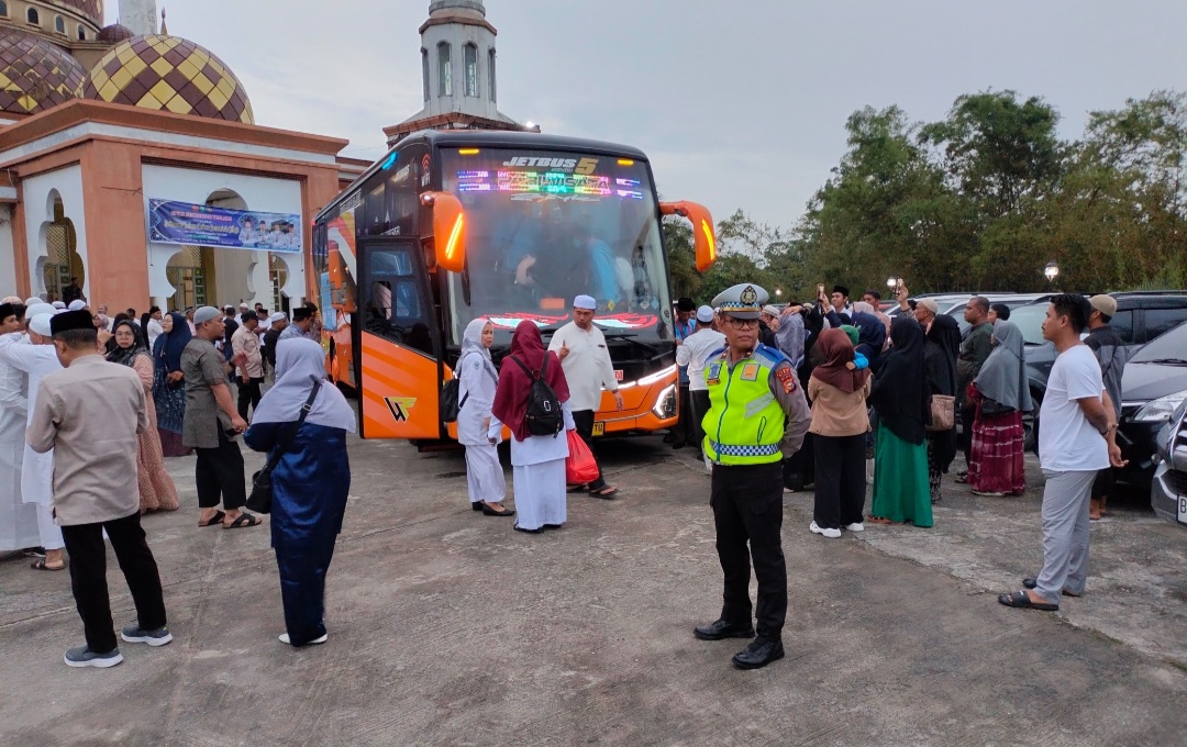 Kepolisian Sektor (Polsek) Tualang melaksanakan kegiatan pengamanan dalam acara pelepasan calon jemaah haji dari Kecamatan Tualang, Kabupaten Siak. Kegiatan yang berlangsung pada Minggu pagi (11/5/25) pukul 05.00 WIB ini dipusatkan di Masjid Baitur Ridha, Jalan Raya Km. 11, Kampung Perawang Barat.