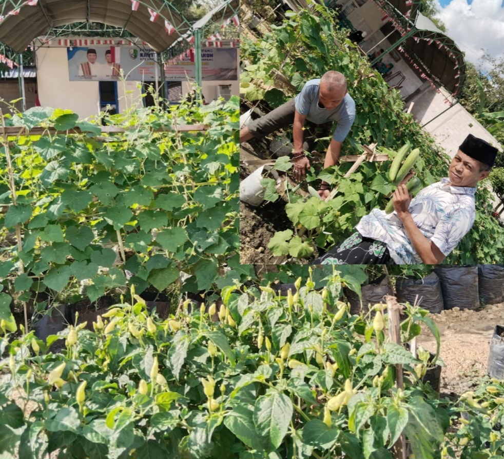 Pj Kades Baruh H. Adi Nurudin serta mentornya Haji Ansori mengajak semua warganya untuk menanam sayuran yang mudah serta bisa menambah penghasilan setiap harinya. (hdt)