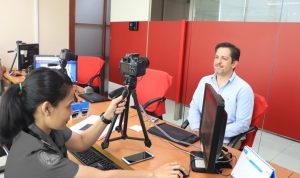 pengambilan foto dan wawancara di kantor imigrasi saat mengajukan perpanjangan izin tinggal.