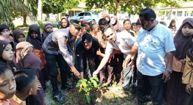 Kegiatan ini merupakan bagian dari gerakan penghijauan yang melibatkan berbagai elemen masyarakat, termasuk aparat kepolisian, pihak sekolah, guru, dan orangtua siswa. Dengan mengenakan seragam dinas, Ipda Sarlose Mesra tampak antusias menanam bibit pohon di halaman sekolah bersama para peserta lainnya.