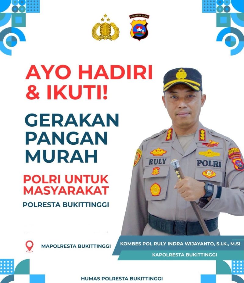 Jangan lewatkan kesempatan ini! Datangilah Gerakan Pangan Murah Polresta Bukittinggi pada Kamis, 14 Agustus 2025, di depan Mako Polresta Bukittinggi. Kami tunggu kehadiran Anda!(Fendy Jambak)