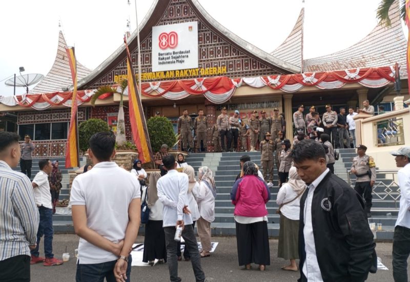 Massa mulai berkumpul sejak pukul 14.00 WIB di halaman DPRD Bukittinggi dengan pengamanan dari aparat gabungan.