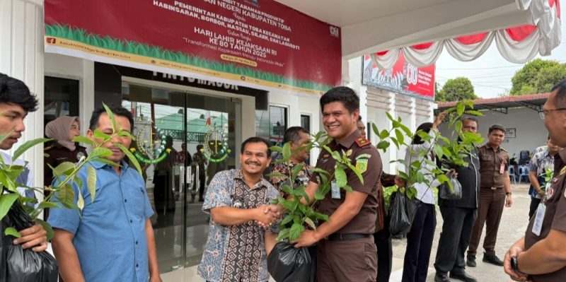 Toba, Sumut, CNN Indonesia.id – Balige, 28 Agustus 2025 –Kejaksaan Negeri Kabupaten Toba melaksanakan kegiatan penyerahan bibit tanaman produktif dalam rangka memperingati Hari Lahir Kejaksaan Republik Indonesia Ke-80 Tahun 2025 dengan tema “Transformasi Kejaksaan Menuju Indonesia Maju”. Kegiatan ini terlaksana melalui kerjasama dengan Perum Jasa Tirta I dengan membagikan sebanyak 2.000 bibit alpukat dan durian kepada Pemerintah Kabupaten Toba yang disalurkan ke 5 (lima) kecamatan di Kabupaten Toba yaitu Kecamatan Habinsaran, Kecamatan Borbor, Kecamatan Nassau, Kecamatan Silaen, dan Kecamatan Laguboti.
