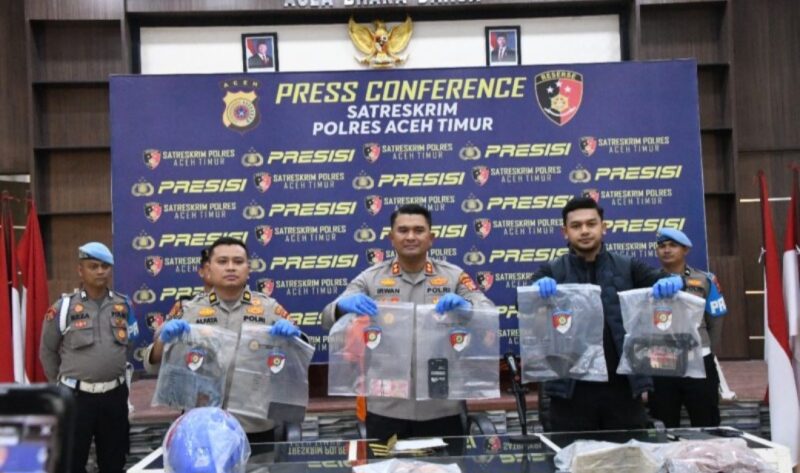 Kapolres Aceh Timur AKBP Irwan Kurniadi, S.I.K. saat memimpin Konferensi Pers di Aula Bhara Daksa membenarkan bahwa pelaku sudah diamankan.