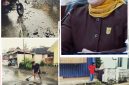 Cegah Lakalantas, Polsek Lingga Bayu Bersama TNI dan Warga Timbun Jalan Rusak di Simpang Gambir