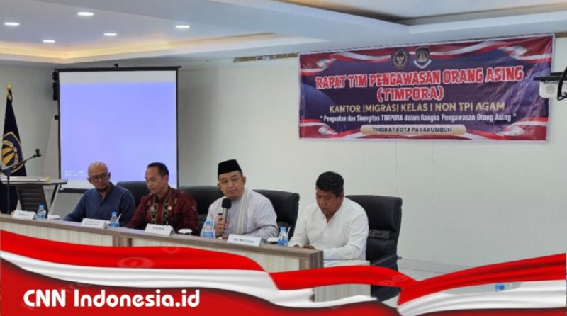 Payakumbuh, CNN Indonesia.id – Dalam rangka meningkatkan sinergitas antar anggota Timpora (Tim Pengawasan Orang Asing), Kantor Imigrasi Agam menggelar rapat Timpora tingkat Payakumbuh pada hari jumat, 26 September 2025. Kegiatan ini digelar secara rutin diadakan di wilayah kerja Imigrasi Agam dengan diikuti oleh anggota Timpora yang terdiri dari instansi-instansi terkait seperti Kepolisian, TNI, Kejaksaan, Pemda, BNN, Lapas, dan lain-lain.