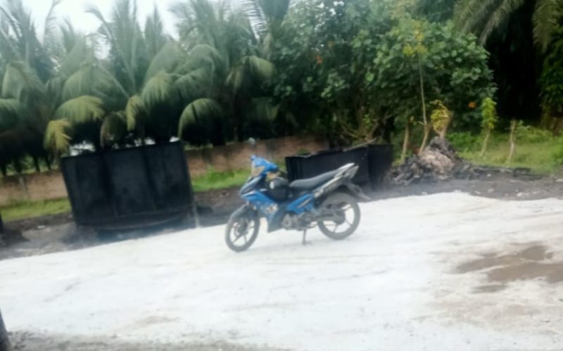 Pantauan tim Wartawan dilokasi 29/09/25 sekira jam 15.00 Wib, lingkungan sekitar Gudang tampak sisa limbah pengolahan buah Sawit yang sudah selesai diolah, menurut keterangan penjaga Gudang, Gudang Pengolahan Sawit ini milik seorang oknum Marinir ALM.