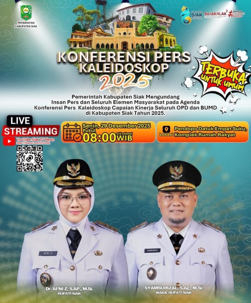 “Sampai hari inipun kami masih membayarkan beberapa tunda bayar 2024. Per hari ini, saldo Rekening Kas Umum Daerah (RKUD) hanya tersisa Rp 3,7 juta saja,” ungkap Bupati Siak, Dr. Afni Zulkifli, dalam konferensi pers capaian kinerja Pemkab Siak 2025 sekaligus transparansi agenda 2026, Senin (29/12/2025), di Pendopo Datuk Empat Suku, Komplek Rumah Rakyat.
