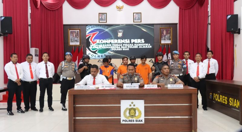 Komitmen tegas Kapolres Siak yang baru dilantik langsung dibuktikan melalui pengungkapan beruntun kasus narkotika di wilayah hukum Polres Siak. Dalam konferensi pers yang digelar di Gedung Endra Dharma Laksana (EDL) Mapolres Siak, Senin (19/1/2026), Polres Siak mengungkap dua perkara besar narkotika yang merupakan kasus perdana sejak AKBP Sepuh Ade Irsyam Siregar, S.H., S.I.K., M.H., resmi menjabat sebagai Kapolres Siak.