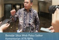 Jakarta – cnnindonesia.id // Kementerian Agraria dan Tata Ruang/Badan Pertanahan Nasional (ATR/BPN) mengidentifikasi adanya pemalsuan terhadap situs web (_website_) satuan kerja (Satker) di sejumlah…